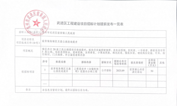 前黄镇集镇区五座公厕改造提升招标计划